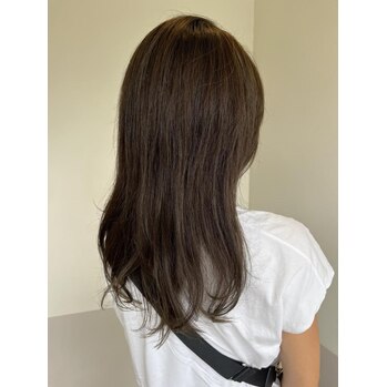 先日、初めてご来店くださったお客様がいました。髪を伸ばしている途中とのことで、今回はカラーメインで施術しました!カラーが落ちると髪が明るく見えてしまいますよね。そこで、アディクシーカラーのアッシュ系を使って、色が抜けても黄色っぽく見えないようにくすみ感を出しました。